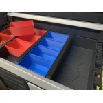 ✔ Each fully equipped drawer includes 16 containers and 3 dividers,