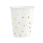 White Paper Cups with Gold Polka Dots, Set of 6: