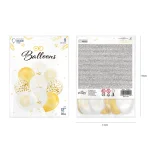 ✔ wzór: W zestawie znajdują się 2 balony komunijne złote i 2 balony białe z napisem IHS otoczonym pięknym koronkowym wzorem, 3 balony białe z grafiką przedstawiającą kielich z hostią oraz 2 balony transparentne ze złotym konfetti,