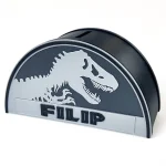 Skarbonka z imieniem podkreśla indywidualność dziecka, dodaje osobistego akcentu do pokoju dziecka, sprawiając, że przestrzeń jest bardziej wyjątkowa. Będzie idealnym prezent dla wszystkich miłośników dinozaurów.